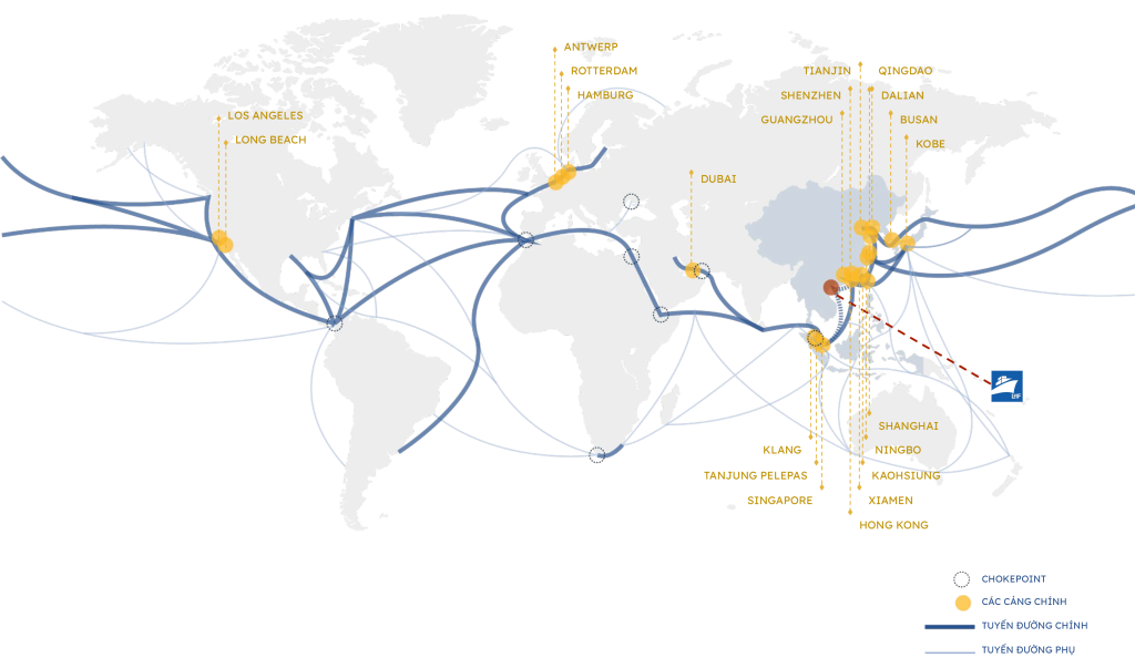 Đặc biệt, cảng nước sâu quốc tế Lạch Huyện nằm trong chuỗi cảng biển lớn nhất thế giới thuộc khu vực Đông Á & Đông Nam Á. Thông qua Cảng nước sâu quốc tế Lạch Huyện, cửa ngõ của Miền Bắc Việt Nam, hàng hoá được kết nối trực tiếp đến các cảng biển Châu Âu, Châu Mỹ. Đồng thời, vị trí của Cảng nước sâu quốc tế Lạch Huyện cho phép sắp đặt lại, tối ưu hoá hành trình từ cảng nguồn đến cảng đích, làm dịch chuyển luồng hàng hải quốc tế và trở thành cảng trung chuyển của khu vực, thay thế dần các cảng biển Hong Kong và Singapore.