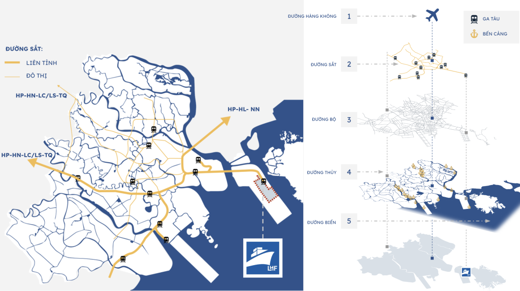 Thành phố Hải Phòng là khu vực có tốc độ phát triển hạ tầng giao thông nhanh nhất Việt Nam, giúp luồng hàng hoá vận tải giao thương qua khu thương mại tự do Lạch Huyện được kết nối nhanh chóng và thuận tiện tới các tỉnh thành của Việt Nam, tới các cảng lớn trong khu vực cũng như trên thế giới thông qua 5 phương thức vận tải: